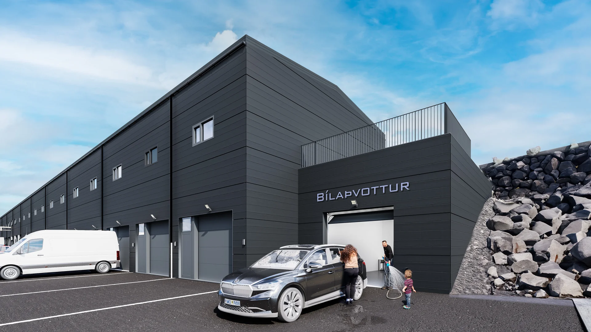 Sameiginlegt aðgengi að salernum og bílaþvottaaðstöðu innanhúss fyrir eigendur og leigjendur.